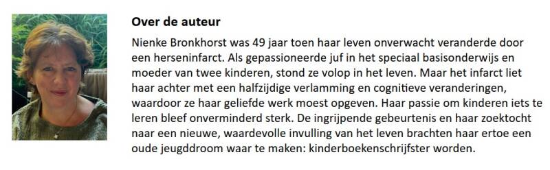Alhoewel juf Nienke Bronkhorst een herseninfarct kreeg, liet dat haar niet stoppen kinderen dingen te blijven leren. Vanuit haar passie voor onderwijs schreef ze een kinderboek over niet-aangeboren hersenletsel en de gevolgen ervan. Op vrijdag 22 augustus verschijnt haar nieuwe boek Mika heeft een opa met NAH - Uitleg voor kinderen over niet-aangeboren hersenletsel. Dit kinderboek wordt uitgegeven door Uitgeverij Boekscout.