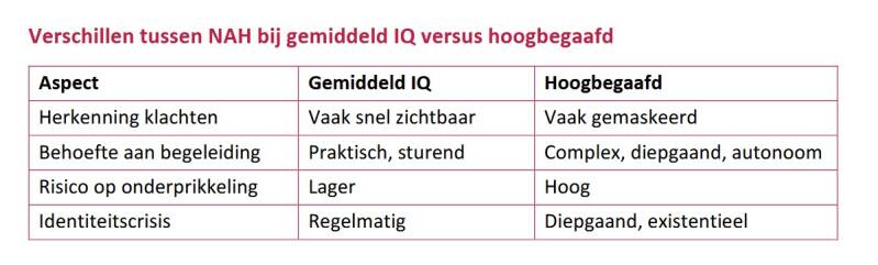 Er is duidelijk behoefte aan een persoonlijke en zorgvuldige aanpak, waarbij we niet alleen kijken naar de symptomen van hersenletsel, maar ook naar de unieke behoeften en talenten die horen bij hoogbegaafdheid.