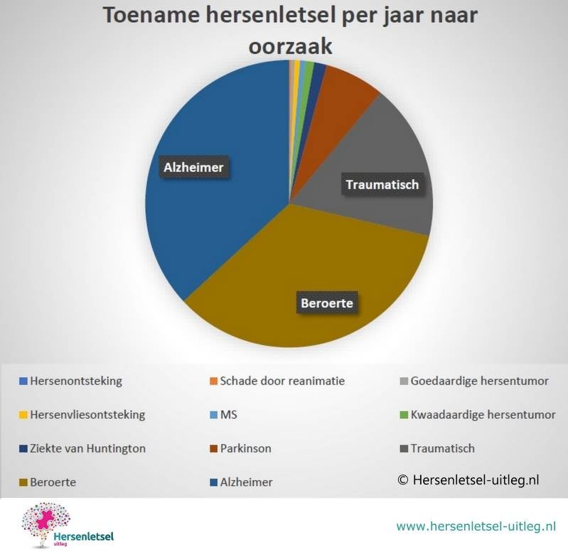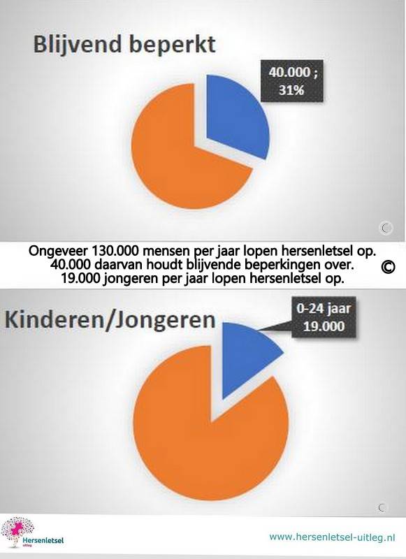 Totaal 130.000 tot 160.000 nieuwe mensen met hersenletsel per jaar (onder de 65 jaar!) in Nederland met de volgende onderverdeling: