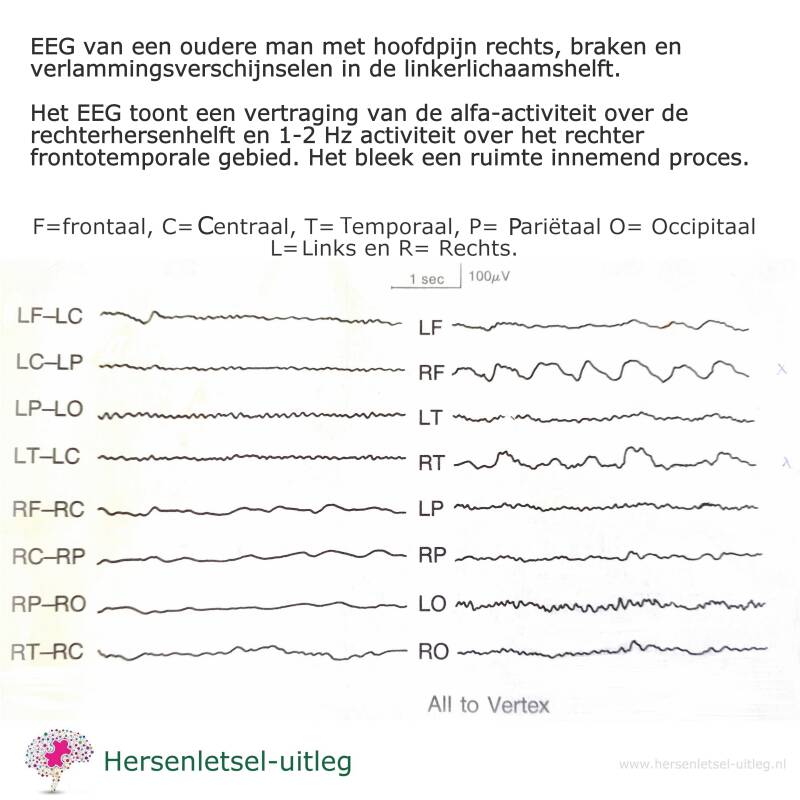 Het EEG laat zien dat een bepaald gedeelte van de hersenen een afwijkend patroon vertoont.