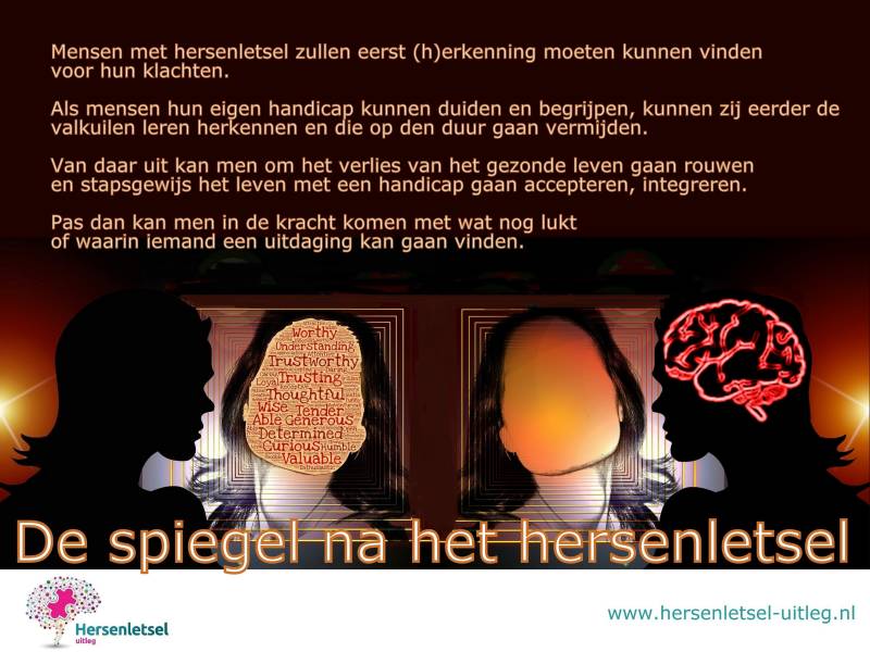 Hersenletsel is één van de meest ingrijpende letsels, want de hersenen dat zijn wijzelf. Na het hersenletsel krijgt niemand een routekaart of navigatiesysteem mee hoe je je nieuwe leven weer verder kunt leven. Alles is veranderd. Het kan lijken op één grote puzzel die je opnieuw moet gaan leggen, tot je 2.0 versie. De kunst is om gaandeweg te ontdekken wat (nog) wél kan, een ander toekomstperspectief, en op weg te gaan om te accepteren wat nu anders is. Dat gaat gepaard met vragen (wie ben ik nu?, wat kan ik nog?, wat wil ik? en wat maakt voor mij het leven de moeite waard?). Dat gaat óók gepaard met rouw. Dat noemen we levend verlies omdat er niemand overleden is maar de rouw om wat niet meer kan, misschien wel elke dag, later bij bepaalde momenten groot voelbaar is. Zie pagina levend verlies.