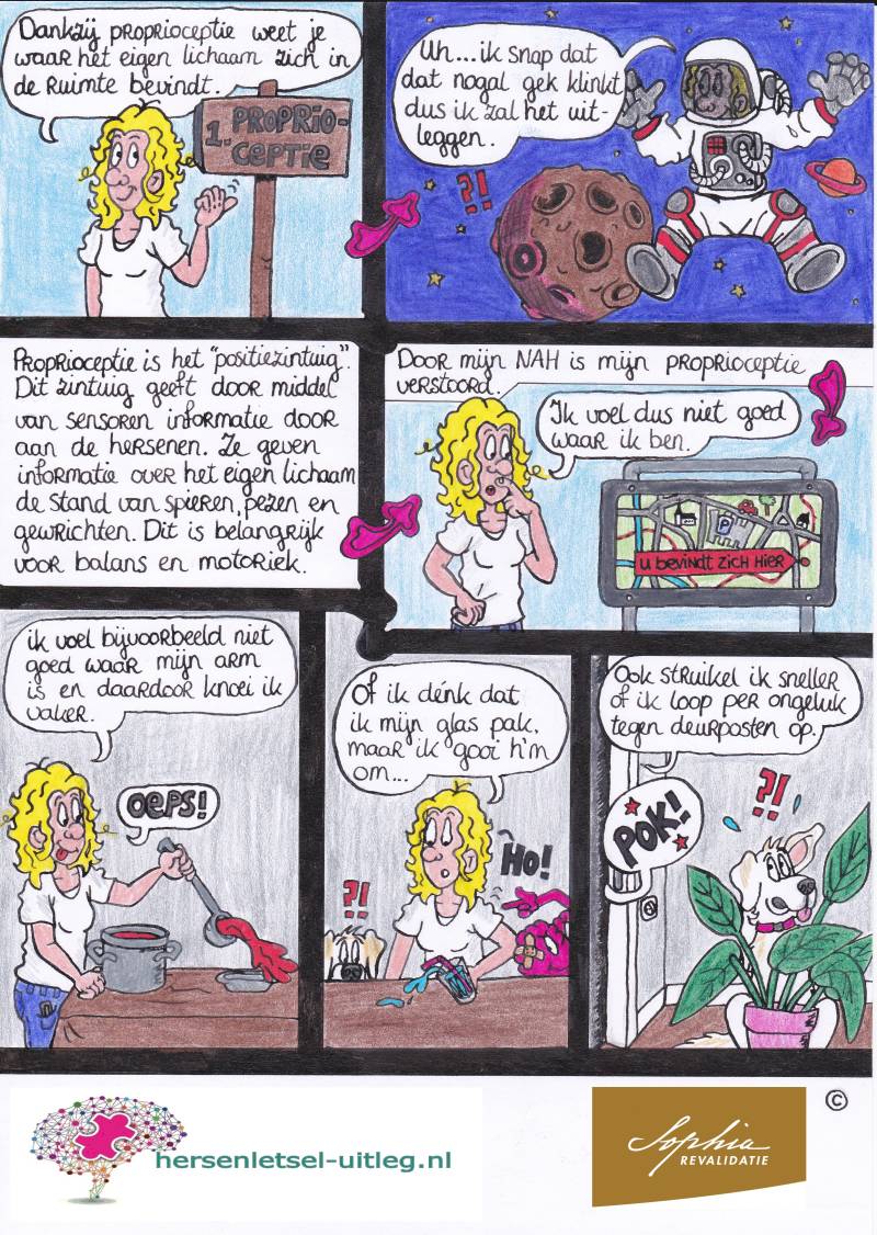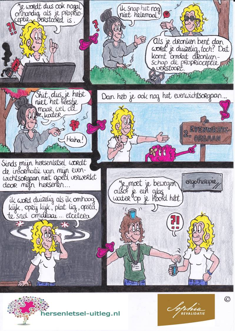 Haar revalidatietraject bij Sophia Revalidatie heeft ze al eerder bijzonder treffend in beeld gebracht in het stripverhaal Golfsurfers. Zij tekende ook al een strip met uitleg over hersenletsel voor jonge kinderen. Haar eerste serie blogs staat achter deze link. Haar tweede serie blogs staat achter deze link.