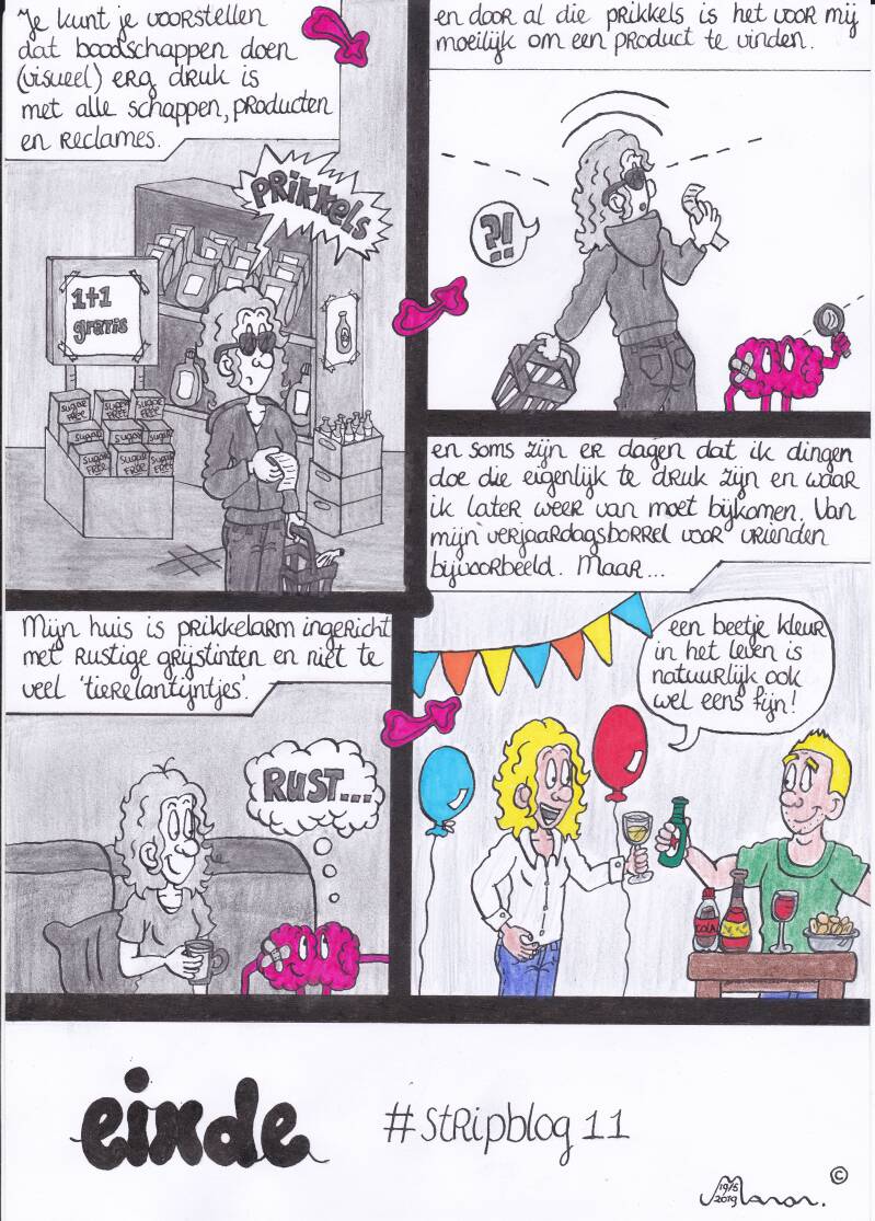 De tweede strip op deze pagina bereik je via deze link..en gaat over visuele overprikkeling.