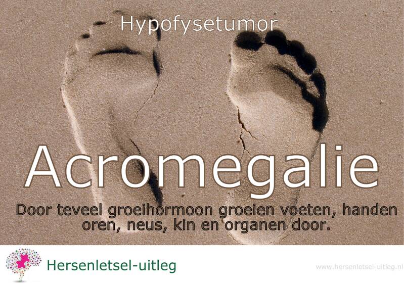 | Acromegalie is een groeistoornis die door een zwelling of tumor in de hypofyse wordt veroorzaakt. Er wordt teveel groeihormoon aangemaakt. |