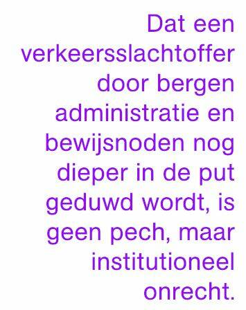 Dat een 75-jarige truckchauffeur de zon in de ogen krijgt net wanneer ik langsrijd op m’n fietsje, is brute pech. Dat een verkeersslachtoffer door bergen administratie en bewijsnoden nog dieper in de put geduwd wordt, is geen pech, maar institutioneel onrecht.