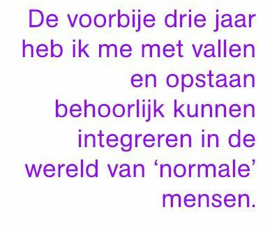 De voorbije drie jaar heb ik me met vallen en opstaan behoorlijk kunnen integreren in de wereld van ‘normale’ mensen (ze bleken niet allen even normaal, best geruststellend).