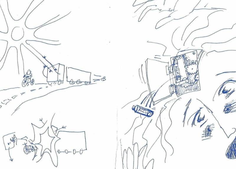 Ik teken de dingen therapeutisch van me af, weg uit mijn systeem: het gekke kopvoetertje waarmee ik mezelf soms voorstel mag nu mijn lasten dragen. De tekeningen bleken ook de beste manier om te delen wat er allemaal gebeurt in en rond m’n hoofd.