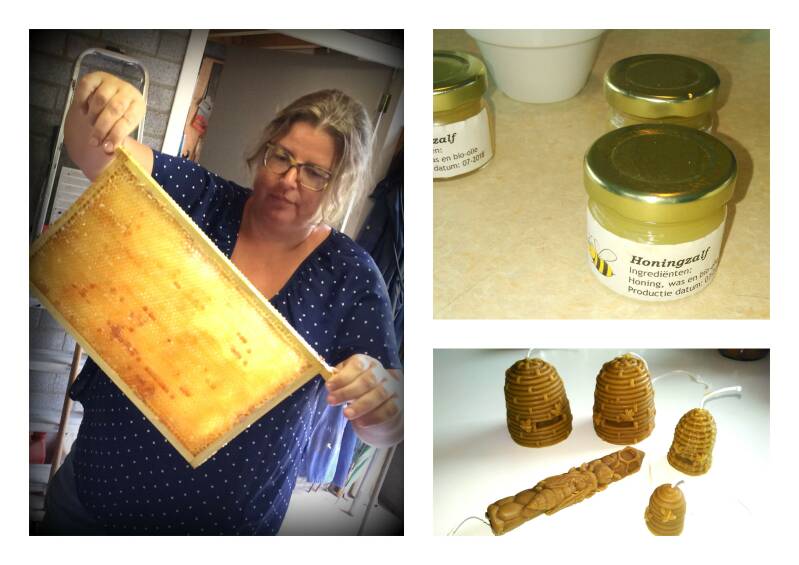 Ik ben imker. Heerlijk rustig in de natuur en ik maak kaarsen en zalf van mijn was.