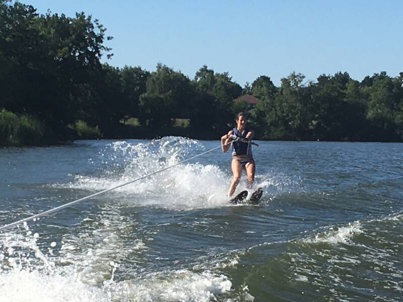"Waar ik echt gelukkig van word, is waterskiën! Die sport betekent veel voor mij. In de eerste plaats omdat ik via deze weg de liefde van mijn leven leren kennen heb, maar ook omdat het supertof is natuurlijk! Het skiën zelf is niet eenvoudig met een halfzijdig verlamming. Goede instructies, veel oefenen en veel geduld zijn onontbeerlijk. Ik moet ook luisteren naar mijn lichaam: sommige dagen gaat het supergoed, andere dagen dan weer totaal niet. Maar de keren dat ik over het water zweef, heb ik een glimlach tot achter mijn oren!"