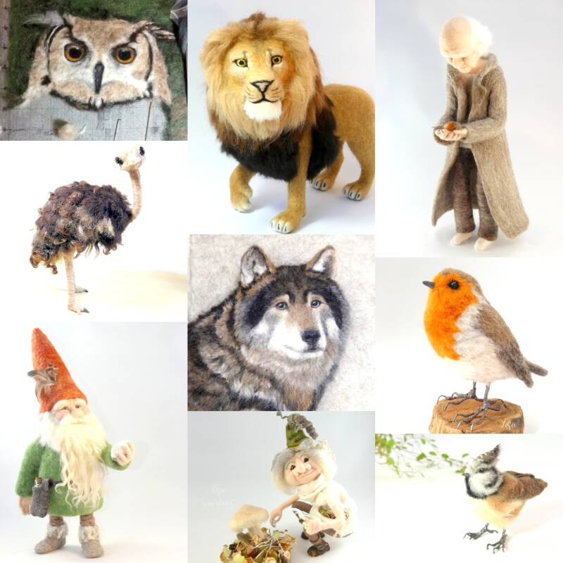 Ik heb naaldvilten ontdekt, het vervilten van ongesponnen wol met een naald met weerhaakjes. Je kunt er figuren mee maken, soort kleien met wol eigenlijk, of ermee "schilderen". Veel hobbies zijn nu te intensief, maar dit zit voor mij (en misschien ook anderen?) in een “sweet spot”. Het is niet moeilijk en toch uitdagend, met veel ruimte voor je eigen creativiteit, makkelijk te pauzeren ook. Je werkt niet echt met patronen, het is meer reageren op wat je voelt en ziet, dat maakt het voor mij ook goed te doen. En dat gevoel van de wol in m'n handen, heerlijk…