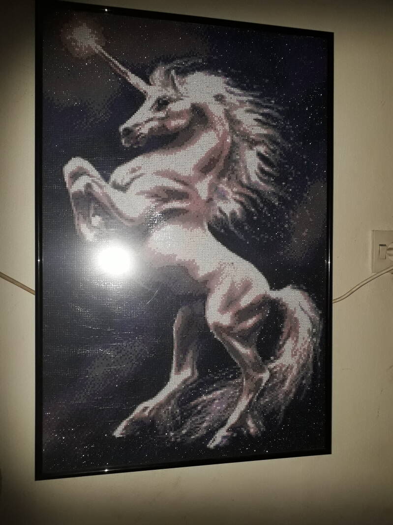 Jacky: ik doe sinds 4 jaar aan Diamond painting. Ik heb sinds ongeveer 7 jaar geleden te horen gekregen dat ik FNS heb of CS. Ben zwaar overspannen geweest en vond eindelijk 4 jaar geleden voor het eerst een hobby (ben 60 jaar jong) zit in een rolstoel buitenshuis. Diamond painting werkt met een canvas, een pennetje en wax, het is bijna hetzelfde als painten op nummer maar dit werkt met steentjes. Elk steentje heeft eigen nummer en op de canvas staat wat welk steentje waar hoort. Van klein ben ik nu grote projecten aan het maken. Zie afbeelding: