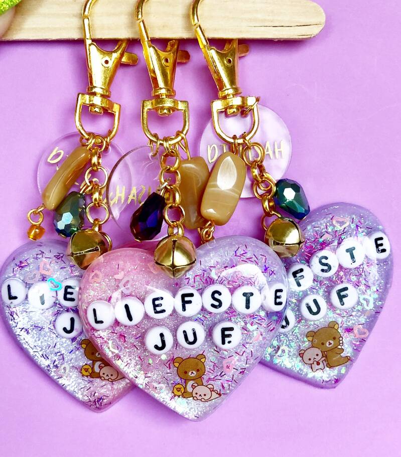 hobby gietharsen: epoxyhars sleutelhangers en andere ornamenten. Foto hierboven.