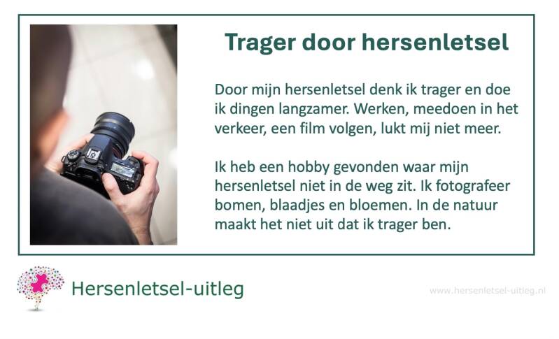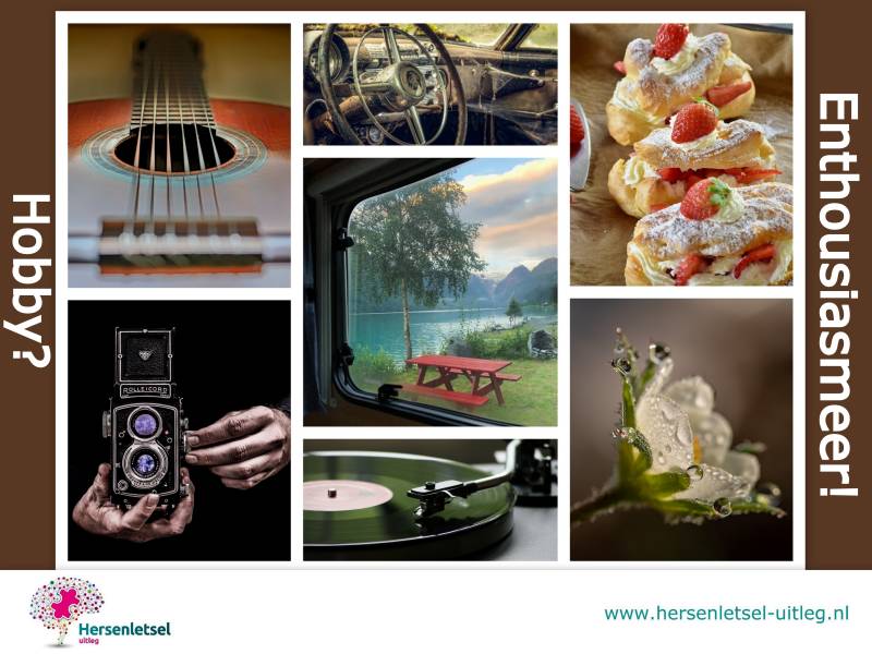 Wij vroegen mensen of ze in 100 woorden en 1 foto anderen met hersenletsel konden enthousiasmeren voor hun hobby! Lees onder deze foto van onze oproep, hun verhaal en bekijk hun hobby's!