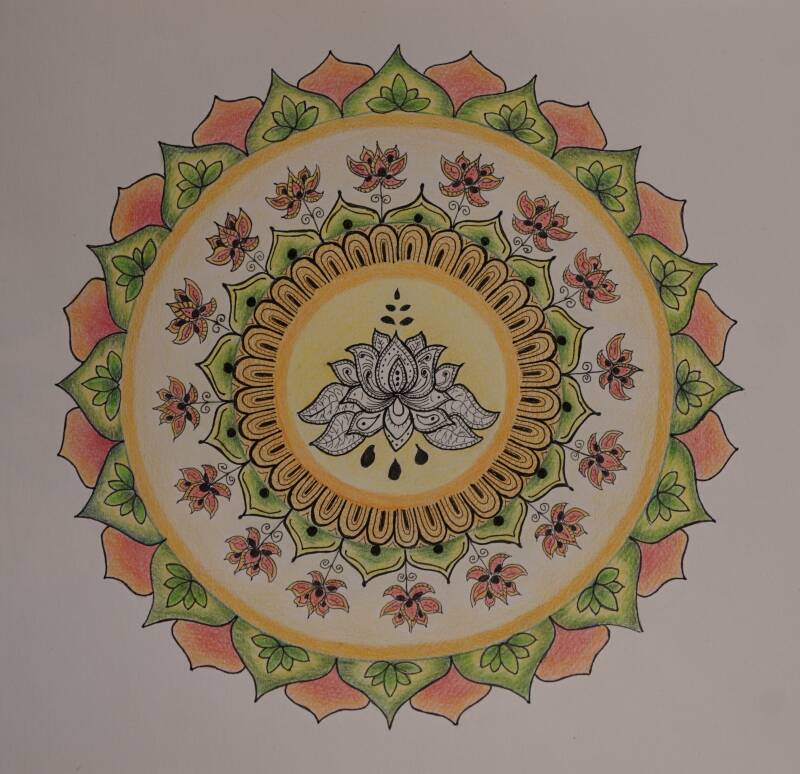 Pieta: Ik heb verschillende hobby's, maar mijn grootste hobby van dit moment is mandala tekenen. Ik deed het al zo af en toe, tot ik vorig jaar begonnen ben met een cursus bij Caroline's tekencirkel. dit kan op eigen tempo via internet. Je hoeft niet te kunnen tekenen, alles is goed. Het is gewoon heel fijn en rustgevend om binnen een cirkel met tekenen en kleuren bezig te zijn.
