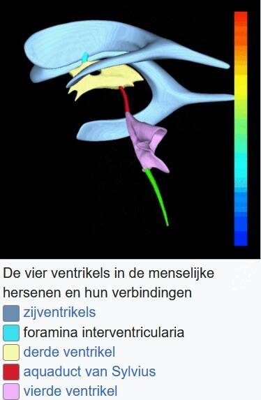 Het Aquaduct van Silvius verbindt, als een soort waterleiding, het derde ventrikel (geel op de afbeelding) en het vierde ventrikel (roze paars op de afbeelding). Ventrikels worden ook wel hersenholtes of hersenkamers genoemd. Lees meer over de functie en ziektebeelden van deze ventrikels/hersenholtes /hersenkamers.