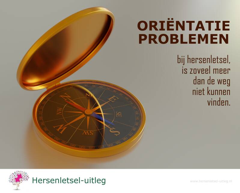 In plaats: De ruimtelijke oriëntatie kan slechter zijn door het hersenletsel: iemand weet de weg naar huis niet meer precies. Die persoon kan moeite hebben met het vinden van de plaats, de weg of een route door een gebouw. Het is voor de persoon niet mogelijk om zelf een aanknopingspunt te vinden om de weg terug te vinden.