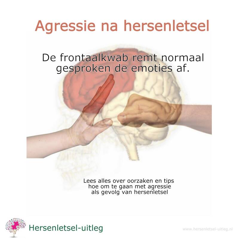 Al deze functies van de frontale kwab zijn allemaal nodig om iemands gedrag te reguleren. Wanneer de frontale kwab beschadigd raakt, kan dit gedragsvaardigheden aantasten. Dat kan leiden tot agressief gedrag. Er is grote moeite om ongepast gedrag te beheersen. Vaak wordt dat in combinatie gezien met risicovol gedrag en slechte besluitvorming na hersenletsel. De overige hersengebieden die betrokken zijn bij agressief gedrag vind je in het uitklapmenu: