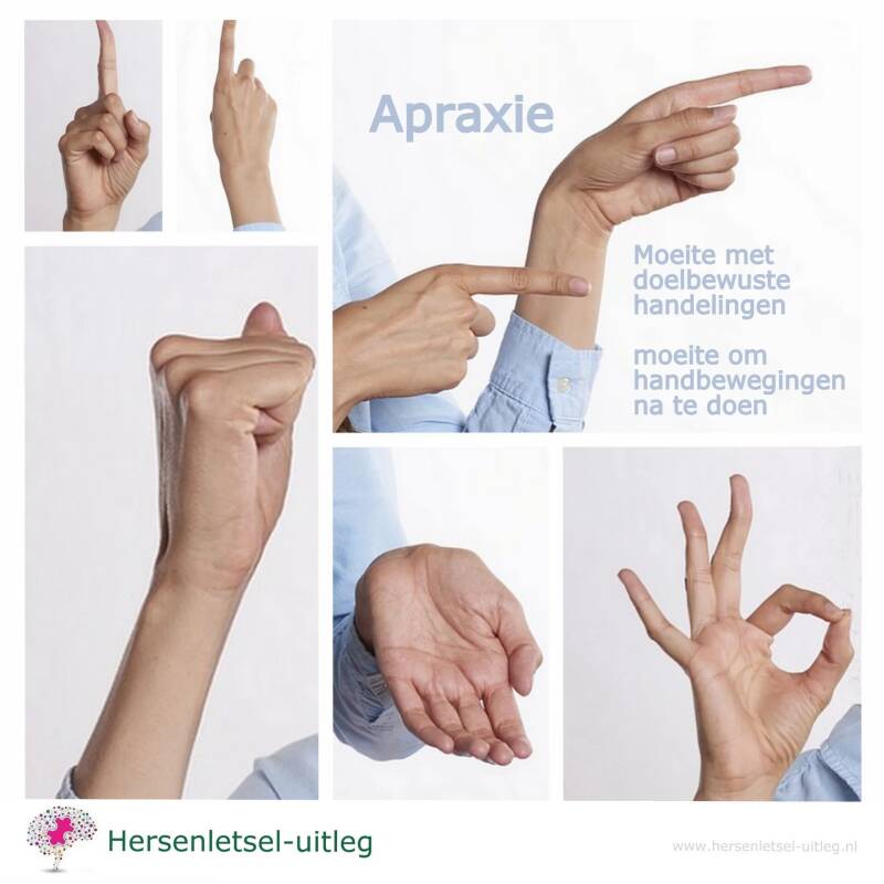 Dit komt niet voort uit verlamming of onhandige coördinatie. Ook niet door het neglect of gezichtsuitval of onwil. Deze handelingen konden vóór het hersenletsel, wèl worden uitgevoerd. Het kan voorkomen iets de éne dag wel beter lukt dan de andere. Het functioneren van iemand met hersenletsel kan fluctueren door verschillende factoren.