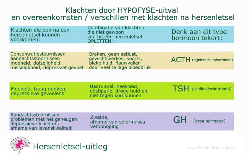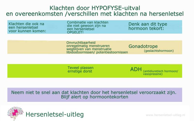Als door hersenletsel de hypofyse of hypothalamus of pijnappelklier (epifyse) beschadigd raken, kan de hormoonhuishouding verstoord zijn.