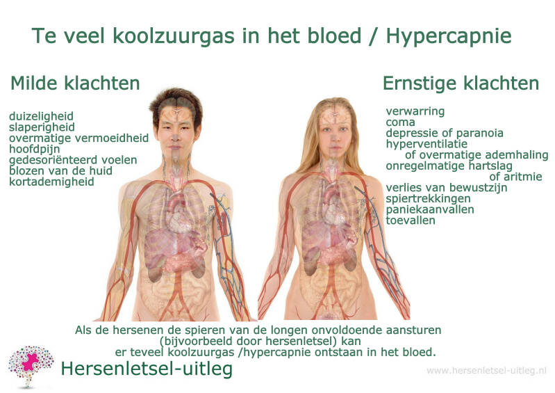 Hypercapnie is een te hoog koolzuurgas in het bloed. Met name komt dat voor in de nacht. Het koolzuurgasgehalte PCO2, kan overdag normaal zijn = normocapnisch. - Lichamelijke klachten op langere duur die vaak eerder onverklaarbaar leken.