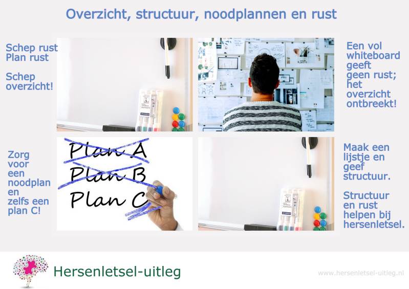 Mensen met hersenletsel hebben over het algemeen behoefte aan structuur, overzicht en rust.