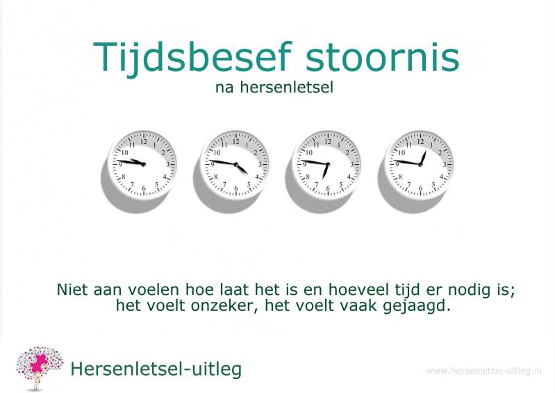 Een van de minder bekende onzichtbare gevolgen van hersenletsel is een tijdsbesef stoornis. Vaak is dit gevolg nog niet herkend door de persoon met hersenletsel zelf.