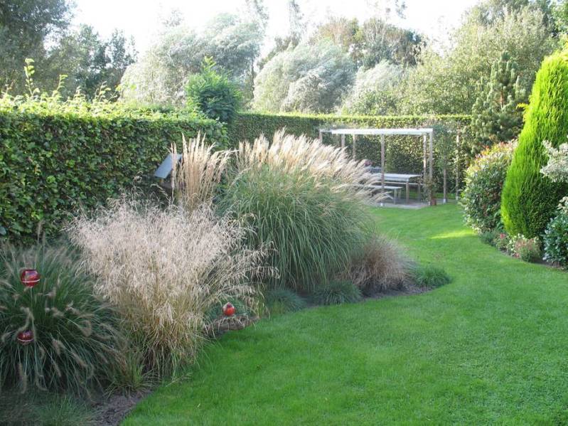 In de grote tuin staan ligbedden, een eettafel en er zijn diverse zithoekjes.