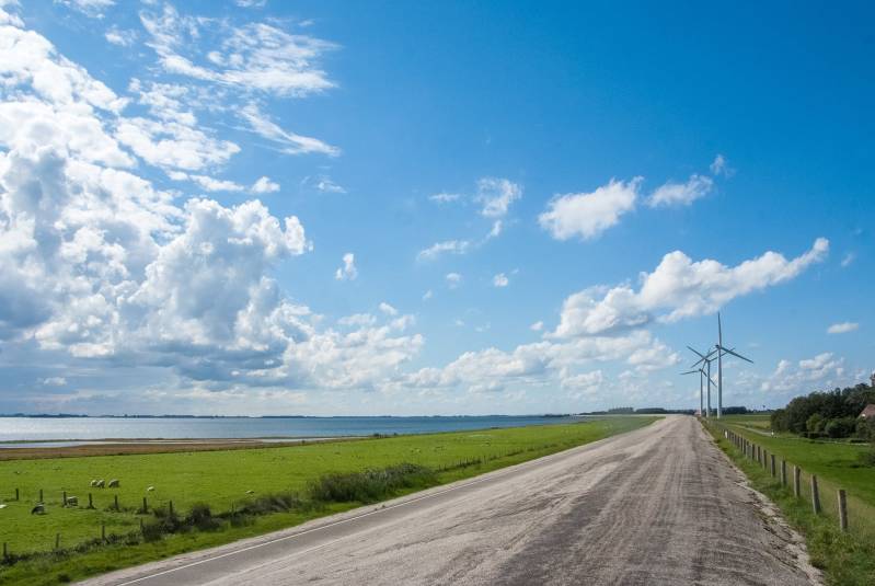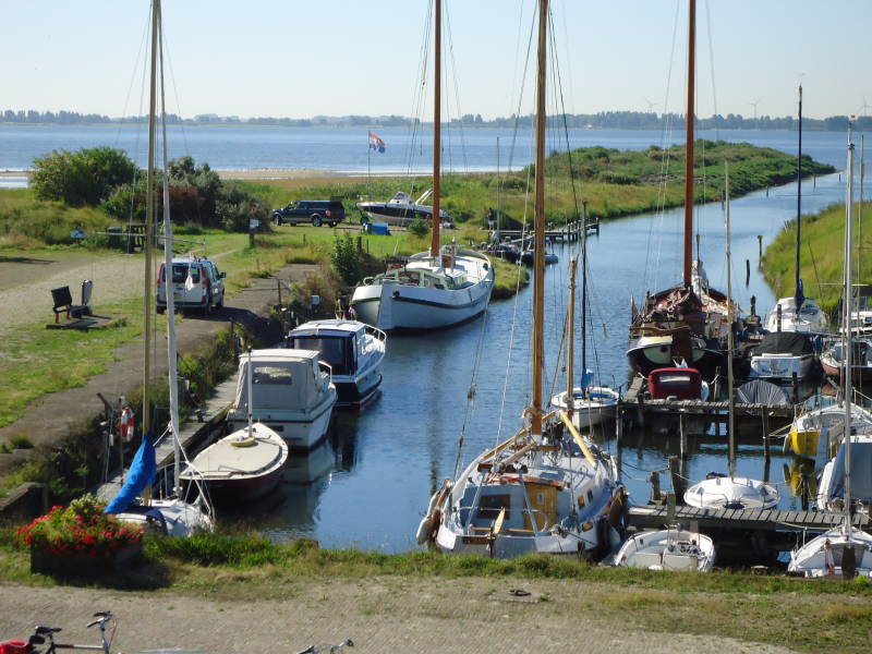 Vanaf de dijk heeft men een weids uitzicht over het Grevelingenmeer.