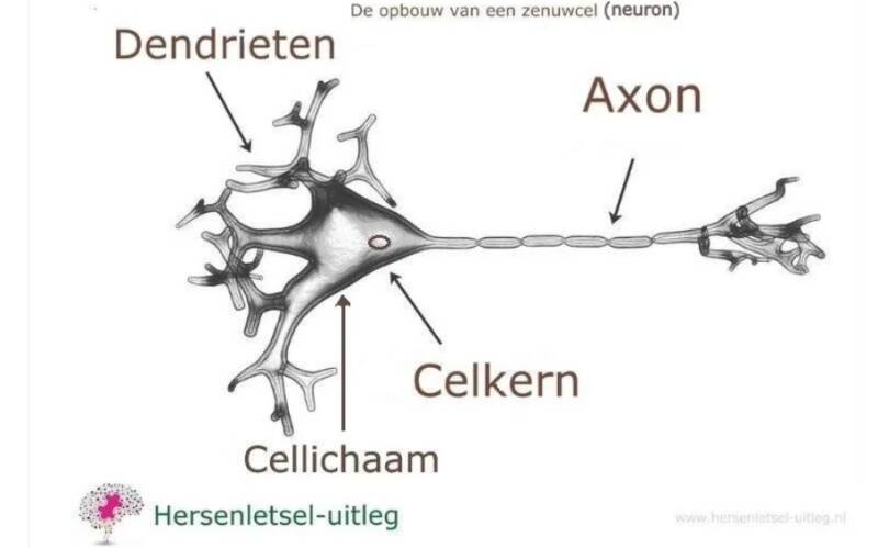 Op de afbeelding hieronder de normale lengte en hoeveelheid uitlopers van een hersencel.