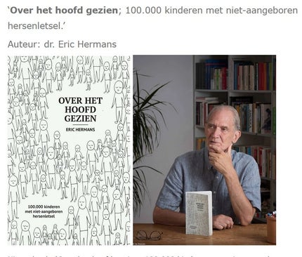 Het boek Over het hoofd gezien (2019, Eric Hermans) gaat over niet-aangeboren hersenletsel bij kinderen. Het boek kost 24,95 euro.