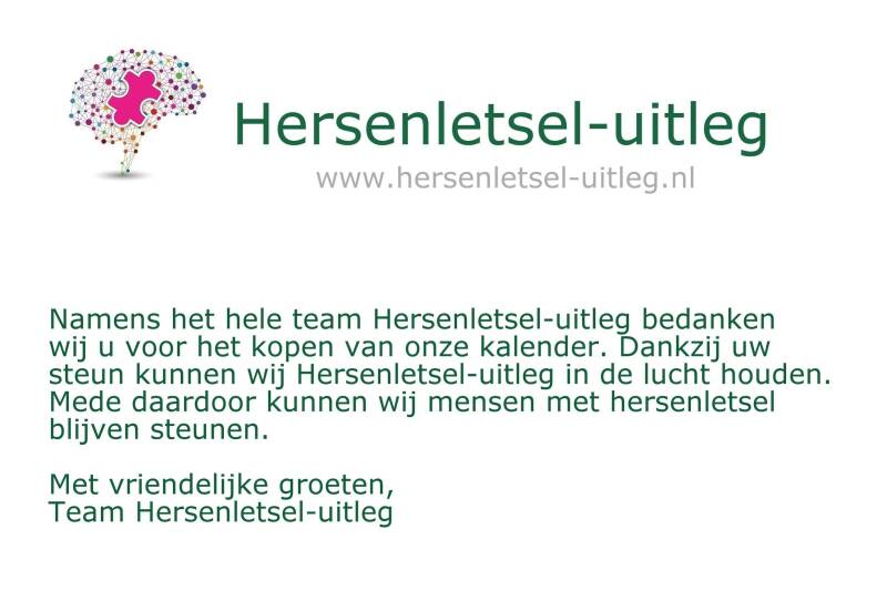 JA! De derde kalender van Hersenletsel-uitleg is een feit. We hebben gekozen voor een jaar kalender 2021, met ruimte om een kleine notitie te maken. Het zijn weer twaalf pakkende posters met teksten over het leven met hersenletsel.